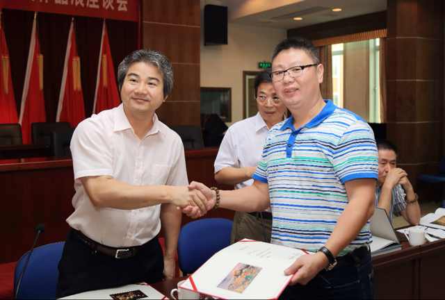 2014年与厦门市美协主席王新伦在市政府会议厅