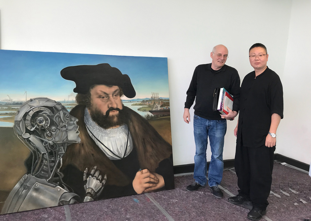 2018年与广东省美协副主席、广州美院教授郭润文在德国汉堡品牌学院