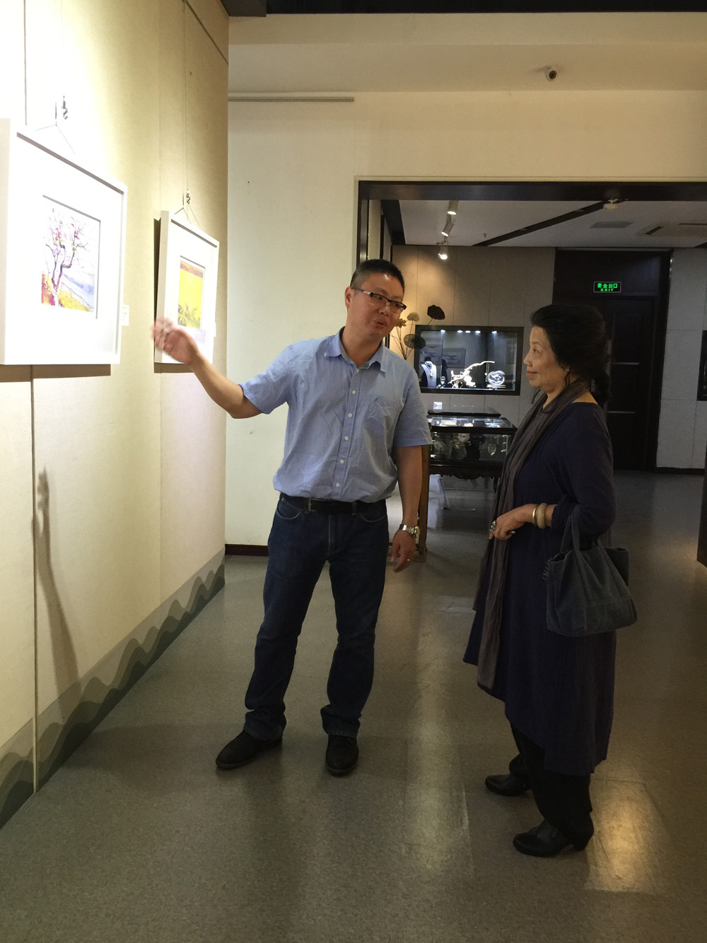 2016年中国书协刻字艺委会副主任、中书协理事、福建省书协副主席陈秀卿参观张及时油画展