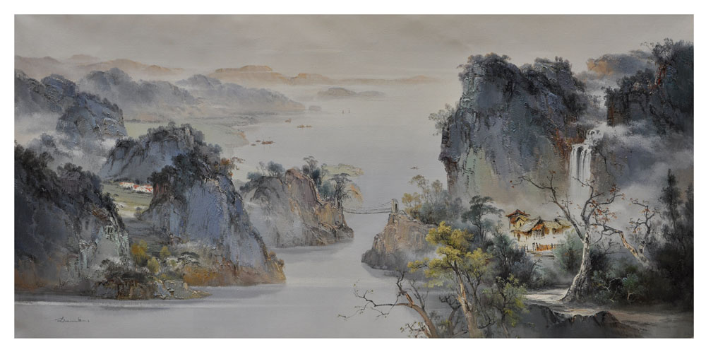 秋高气爽水长流2013年120×380cm