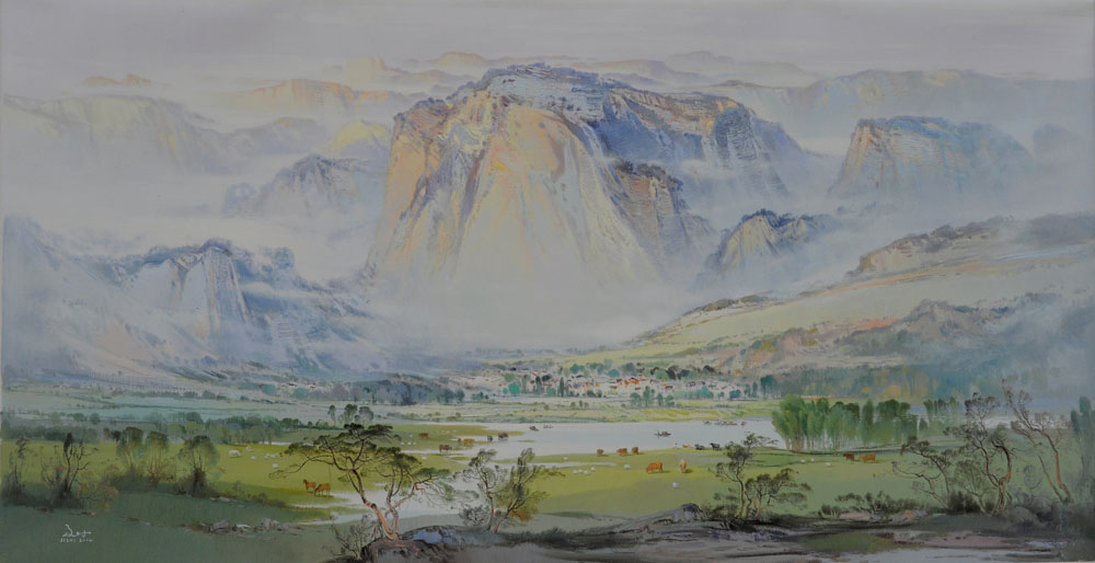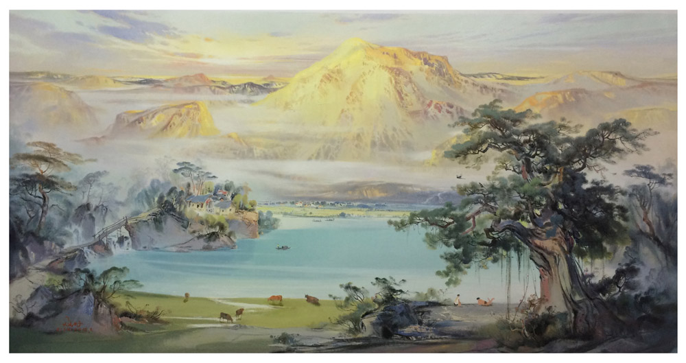 群峰倒影山浮水2014年120×180xm