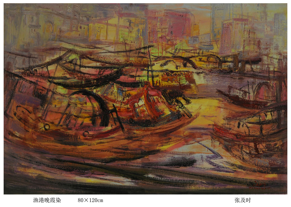 渔港晚霞染2015年80×120cm