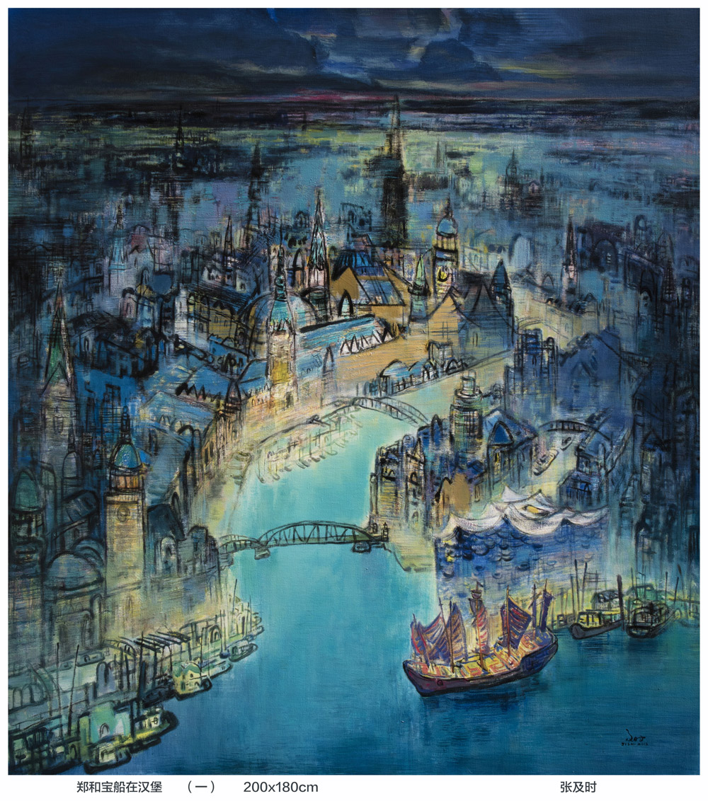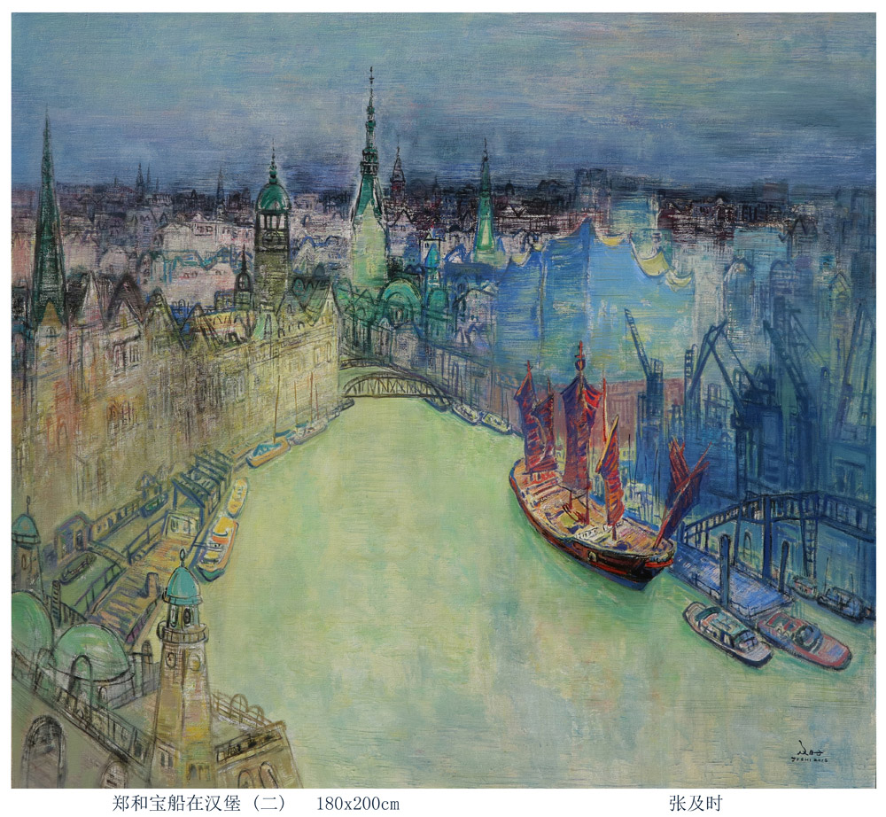 郑和宝船在汉堡(二)2018年180x200cm