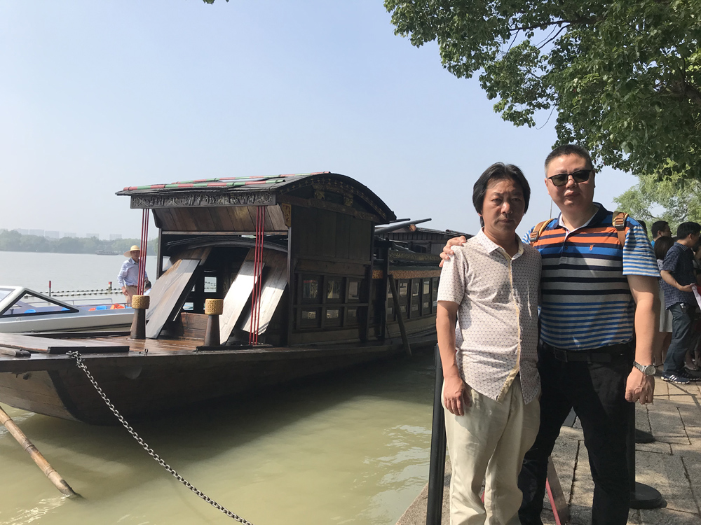 2018年与武夷山文联主席王小华在嘉兴南湖中国共产党诞生的红船前