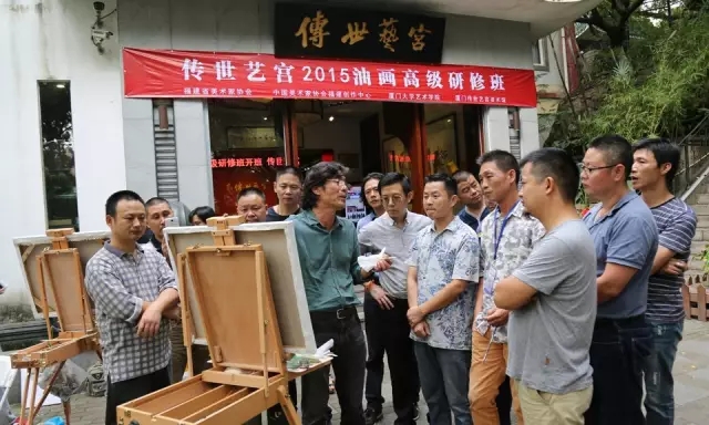 2015年10月20日,为了进一步提高福建省青年油画家的创作水平,在福建省美术家协会和福建省油画家学会的指导下,厦门“传世艺宫”首届油画高研班顺利开班。高研班学员来自八闽各地,有职业画家、也有中学和高校教师,他们都为一个共同的梦想而聚集在一起。高研班老师由全国各地名家组成。厦门大学艺术学院张立平教授是总指导老师,他平易近人、真诚而细心。写生即创作是张老师的教学理念。他不仅强调画面的色彩修养,注重色块之间形与色的协调关系和节奏变化,尤其主张大胆发挥点线面写意性的绘画本体语言。 《中国油画》主编王琨老师,是国内油画界的大咖,但王老师教学平实温和,具有文人画家的优雅。学员体会到王老师对绘画学习的真诚情感与朴实作画的态度。来自天津美院的孙建平教授是一位率性的画家,教学经验丰富。在他的“构成观”教学思想的启发下,大部分第一次写生肖像和人体的同学已不再拘谨,任情绪在画布上自由宣泄。中国油画学会理事的赵九杰教授要求色彩主观表现,主张从笔调上反映艺术家的心境和哲思。戏称自己只是半个油画工作者的麻显钢教授,不但是个人物画高手,而且也是历史画创作的专家,艺术修养深厚。由于大部分学员是职业画师,艺术理论的学习较为薄弱。麻老师精彩的艺术理论课为大家填补了理论知识上的空白。