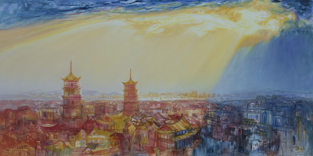 油画《光之城》