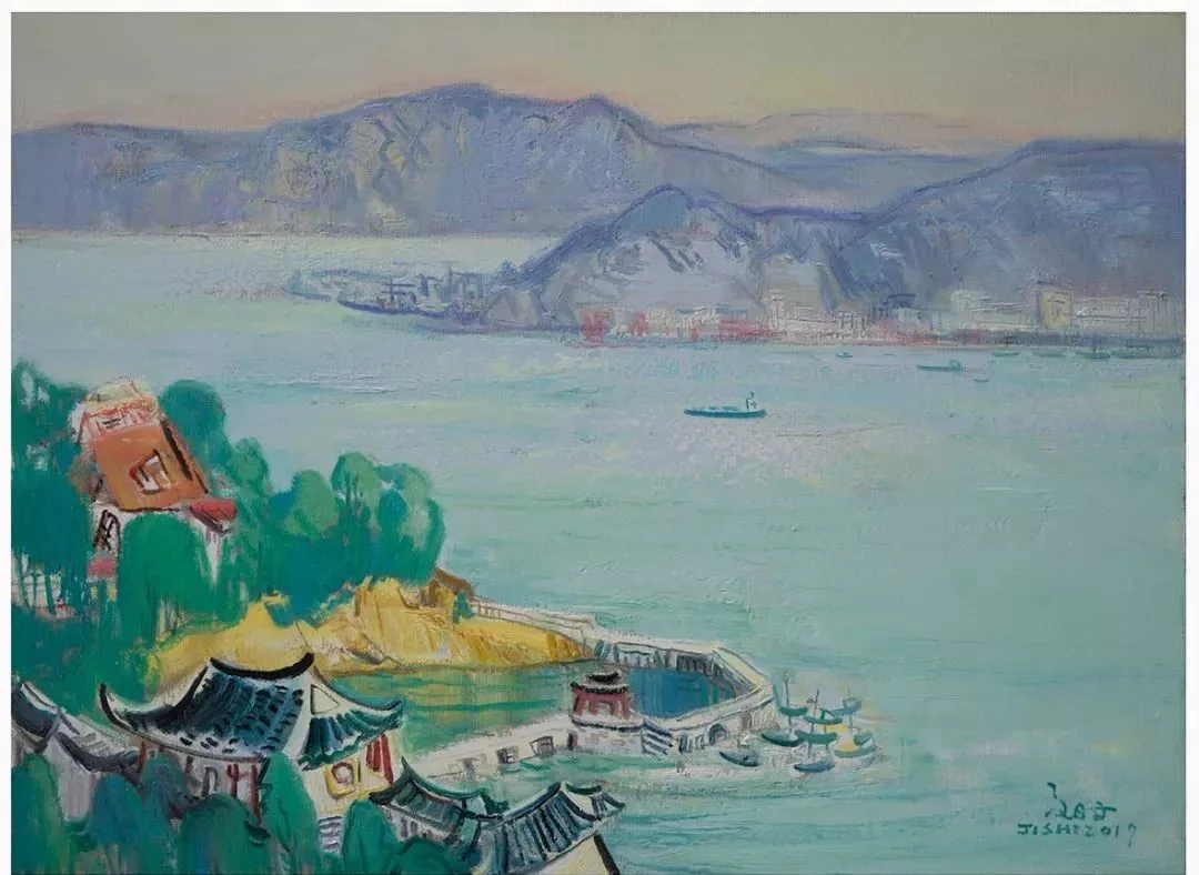 《翠岛舟横咏鹭江》 60×80cm 2019年