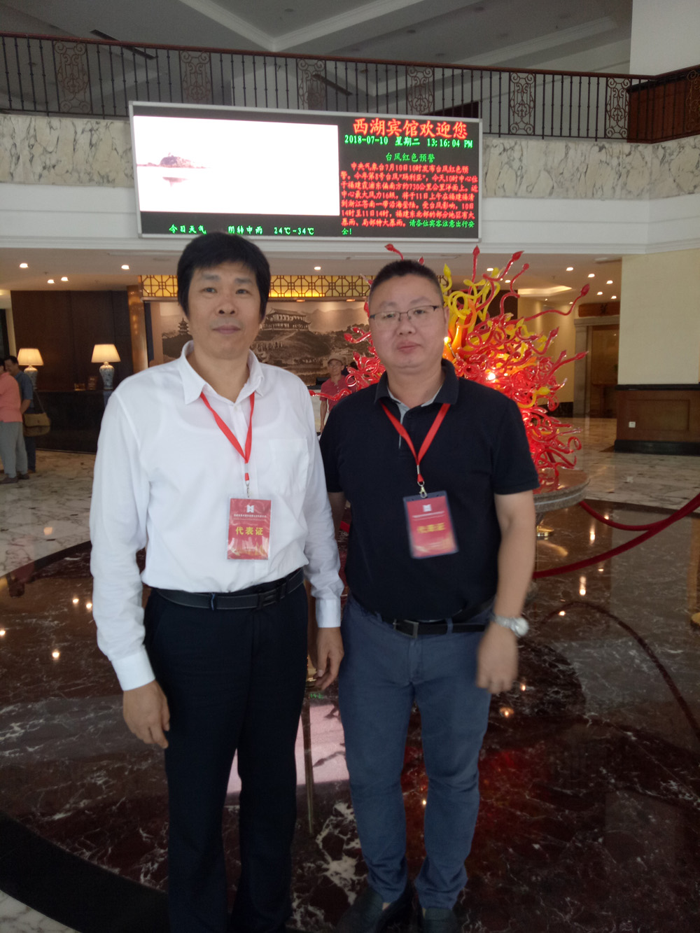 2018年与刚当选为福建省美协副主席的福建省画院院长张永海在福建省美协第七次会员代表大会