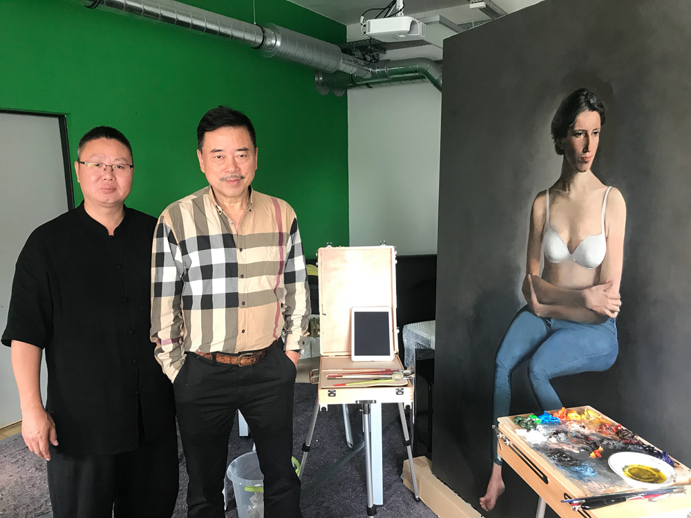 2018年与广东省美协副主席、广州美院教授郭润文在德国汉堡品牌学院