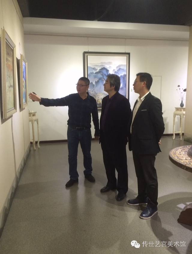 王来文主席与画家张及时、传世艺宫美术馆馆长陈振亲切交流